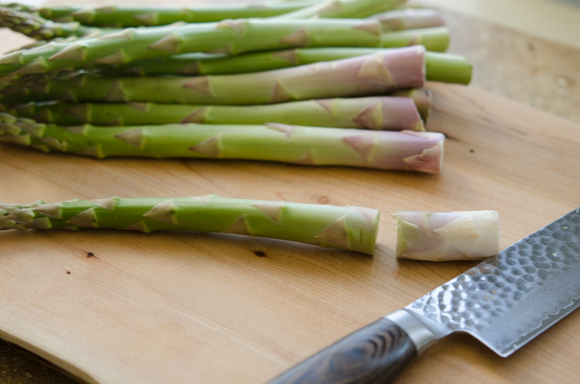 이 레시피에는 연필처럼 가는 것보다는 약간 굵은 아스파라거스가 좋습니다.